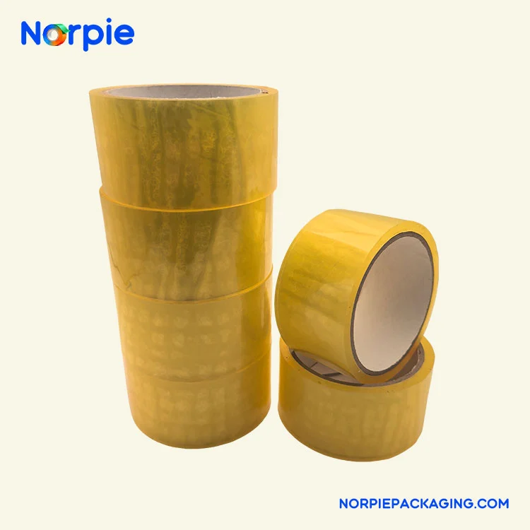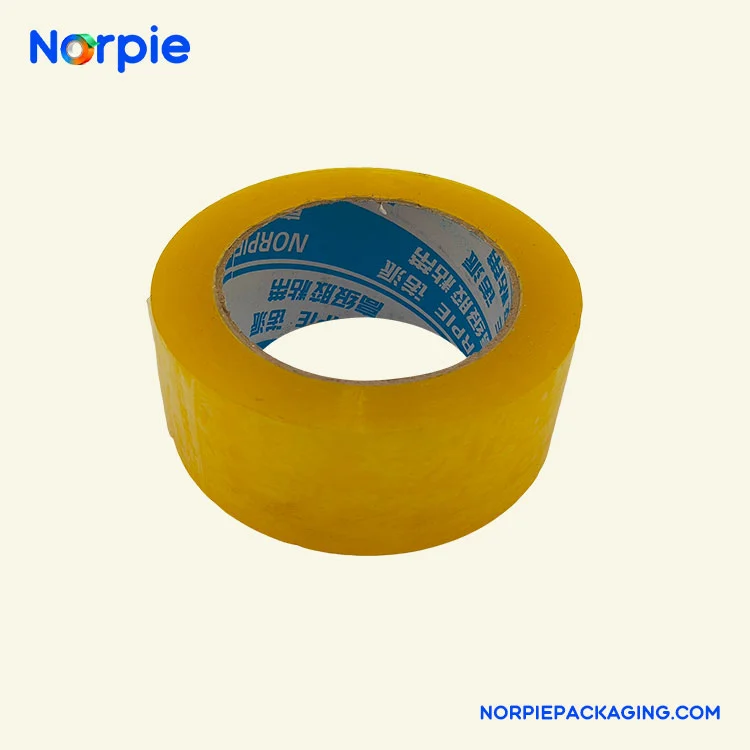 Norpie® produkuje jasnożółtą taśmę pakową, wykorzystując jako materiał podstawowy najwyższej jakości folię BOPP, pokrytą ekologicznym, akrylowym klejem samoprzylepnym na bazie wody. Produkt ma grubość 0,048 mm, przylepność początkową co najmniej 12# kulki stalowej i czas utrzymywania kleistości ponad 20 godzin, co zapewnia doskonałe właściwości wiązania i korzyści dla środowiska. Klej na bazie wody jest nietoksyczny i bezwonny, zawartość LZO jest znacznie niższa od norm krajowych i nadaje się do stosowania w temperaturach od -5 ℃ do 50 ℃.